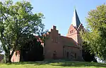 Hele bygningen er tækket med røde tegl, bortset fra tårnets pyramidespir, som er skifertækket. Alle gavle er dekoreret med kamtakker og højblændinger, omend blændingernes antal og stil varierer fra gavl til gavl. De fire kamtakgavle på tårnet er dog ens, og hver forsynet med tre glamhuller. Ud over den nævnte dør i tårnet er der indgange i våbenhuset, tværskibets begge ender og sakristiet. Den gamle norddørs østkarm kan stadig anes mellem vinduerne på skibets nordside. De fleste af kirkens vinduer stammer fra Herholdts restaurering i 1880. Det nordlige af de to østvendte vinduer på det sydlige tværskib anses dog for at være oprindeligt.