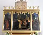 Som nævnt blev der ved Herholdts restauration i 1879 fundet et kalkmaleri mellem vinduesblændingerne i korets østgavl. Maleriet, som stammer fra omkring 1350, blev istandsat af Kornerup, og forestiller en korsfæstelsesscene. (Se billedet af altertavlen.)