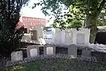 Ved kirkegårdsmurens sydvestlige hjørne findes en lille samling gravsten fra den nedlagte kirkegård, som er fundet bevaringsværdige.