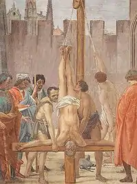 Ifølge traditionen led Peter martyrdøden omkring år 64 e.Kr. samtidigt med Paulus. Det skete under den romerske kejser Neros forfølgelser af de kristne. Ifølge historiske optegnelser var Nero selv skyld i branden i Rom, men brugte den som undskyldning for at udrydde kristne, hvis umoral i forvejen gav dem et dårligt omdømme. Efter branden blev alle kristne i Rom dømt, og deres henrettelser fik præg af en grotesk farce. De kunne vælge mellem at blive indsyet i skind af vilde dyr og sønderbidt af hunde eller blive korsfæstet, gjort til levende fakler og brugt som oplysning om aftenen.