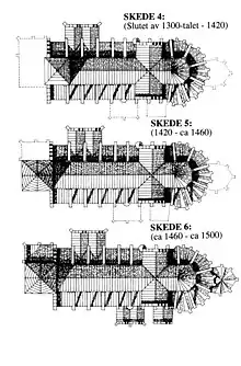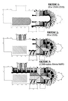 Efter bygningen af koret indvielsen af det nye højalter, fortsatte bygningen af det nordlige sideskib, dele af midterskibet og afslutningen af det nordlige våbenhus. I denne periode blev dele af den gamle kirke stående og blev antagelig anvendt som lagerlokale. Herefter fulgte en periode, hvor kirkebyggeriet stod stille, muligvis på grund af den sorte død i midten af 1300-tallet.