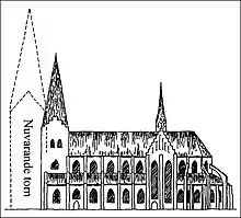 Et nyt tårn vest for midterskibet blev opført efter sammenstyrtningen, men i 1442 styrtede også dette tårn og blev erstattet af det nuværende vesttårn.