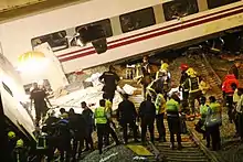 Kl. 20:41 CEST (18:41 UTC)[8][9][10] afsporede Alvia-toget på vej til Ferrol fra Madrid ved Santiago de Compostela. Alle 13 vogne i toget afsporedes, da toget passerede en kurve. Fire vogne væltede.[11] Toget havde 218 passagerer ombord på tidspunktet for ulykken, svarende til en belægningsgrad på 73 %. En af vognene blev revet fra hinanden i ulykken, og en anden brød i brand. Uofficielle tekniske rapporter antyder, at toget kørte mere end dobbelt så hurtigt som tilladt, da det kom ind i kurven.[12]