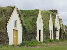 I bymidten er der en skulptur af den islandske hest og flere gamle træhuse.