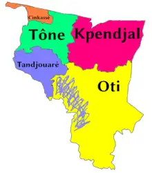 Savanes er inddelt i præfekturene Kpendjal, Oti, Tandjouaré og Tône.