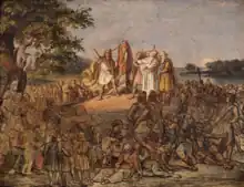 Saxos beretning om de danske sangkonger gjorde indtryk i 1800-tallets kunstliv. Her er det Gustav Theodor Wegener, der har skildret Hjarne, der besynger Frode Fredegod. Hjarne blev hans efterfølger som konge.