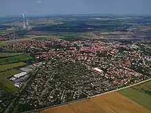 Schöningen set fra syd; I baggrunden ses karftværket Buschhaus