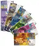 • Sedler: 10, 20, 50, 100, 200 og 1000 francs