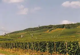 Så i 1954 blev den nye svævebane på strækningen indviet. Den var anlagt således, at den fulgte en nogenlunde ret linje op over de frodige vinmarker, hvorimod tandhjulsbanen havde slået et stort sving udenom markerne. Fra svævebanen er der en flot panoramaudsigt over byen, over vinmarkerne og over Rhinen.
