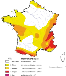 I Frankrig har man udviklet et system, der inddeler landet i 5 seismiske risikozoner: