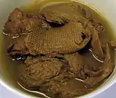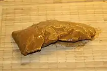 ![]() ![]() Venstre: efterligning af andekød, Højre: klar til at blive skåret i skiver |