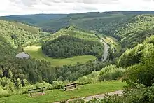 Skilt ved flodens bred i den belgiske by Bouillon.