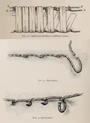 Hovedet på ben-hakkerne anvendt i majsmarkerne af f.eks. kvinderne i mandan- og hidatsa-stammen blev bundet fast med snor af enten sene eller læder.[6]