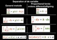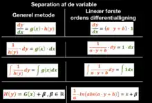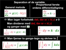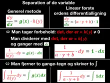 Metoden anvendes, hvor differentialkvotienten af er lig med en funktion af multipliceret med en funktion af :[4]