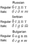 Det serbiske samt bosniske alfabet er en del af det kyrilliske alfabet. Det kyrilliske alfabet er inspireret af det græske alfabet og bruges også i andre østeuropæiske lande blandt andet Rusland og Ukraine. Det er blevet spredt til det meste af Østeuropa via den græsk-orthodokse kirke. Øverst ses det serbisk/bosniske alfabet skrevet på kyrillisk. Nederst er det skrevet på latin (de bogstaver, der bruges i stort set hele verden i dag).