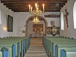 Kirkens indre blev i slutningen af 1950'erne restaureret. Ved samme lejlighed blev der indsat nye stolerader.
