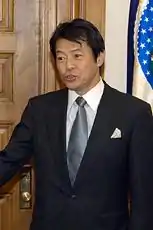 Han var en af premierminister Taro Asos tætte allierede, men blev tvunget til at træde tilbage som minister 17. februar 2009 efter at han ved et pressemøde med G7-finansministrene i Rom 14. februar snøvlede han uforståeligt og havde besvær med at holde sig vågen. Det fik flere til at hævde, at han var beruset. Selv hævdede han imidlertid, at han kun havde indtaget en smule vin, og at hans adfærd skyldes jetlag og at han havde indtaget for meget hostestillende medicin.