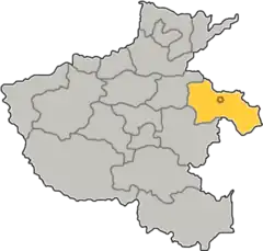 - Amtet Xiayi (夏邑县), 1470 km², 1,13 millioner indbyggere;