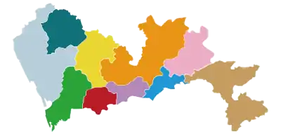 | Distrikt | kinesisk | farve | Indbyggertal (2010 anslået) |
