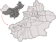 Shihezis beliggenhed i Xinjiang
