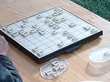 Shogi er et japansk brætspil, der har en del ligheder med skak. En særegenhed ved shogi er, at når man slår en af modstanderens brikker, bliver den ens egen, og når man er i trækket, kan man sætte den ind på brættet i stedet for at flytte en af de brikker, der allerede er på brættet.