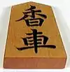 Lansen (香車, "kyōsha") kan flytte sig et ubegrænset antal felter lige frem. Den kan ikke trække sig tilbage eller flytte til siden.