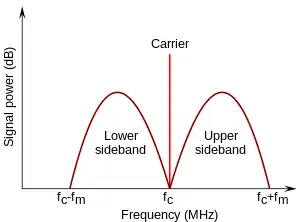 Notation: fc er bærebølgefrekvensen, fm er den maksimale modulationsfrekvens.