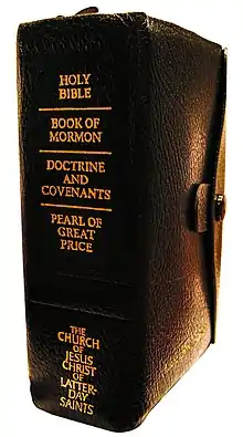 Kirkens kanon af hellige tekster består af Biblen, Mormons Bog, Lære og Pagter og Den Kostelige Perle. De er kirkens standardværker. Selv om de ikke er kanoniske, ser mange medlemmer også generalautoriteterne (kirkens ledere) og specielt kirkens præsidents lære og udtalelser som hellige skrifter, da det betragtes som Guds ord, som nogle endda sætter højere end standardværkerne, da de mener Guds ord fortsat bliver åbenbaret direkte til kirkens profet.[22]