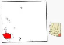 Sierra Vista indtegnet med rødt i Cochise County i Arizona