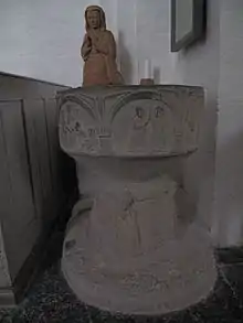 - Grötlingbo kirke, Gotland: Skulpteret font fra ca 1200, tilskrevet Sighref.