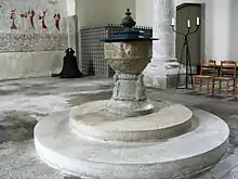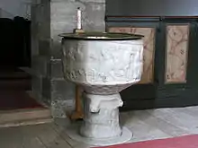 - Knivsta gamla kirke, Uppland: Font fra ca 1200 tilskrevet Sighref.