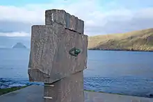 Sigmundur Brestissons gravsten Sigmundarsteinur står på kirkegården i Skúvoy. Stenen har et indhugget kors, men ingen runer.