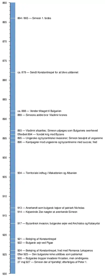 Simeon 1. (864 eller 865 – 25. maj 927), også kaldet Simeon den Store, herskede over Bulgarien fra 893 til sin død i det første bulgarske rige. Simeons succesrige erobringstogter mod byzantinerne, magyarerne og serberne medførte den største territoriale ekspansion nogensinde for Bulgarien[1] og gjorde landet til det mest magtfulde i datidens Østeuropa. Hans regeringstid var endvidere en periode, hvor kulturen blomstrede i uhørt omfang, så den senere er blevet betegnet som guldalderen i bulgarsk kultur.[2]