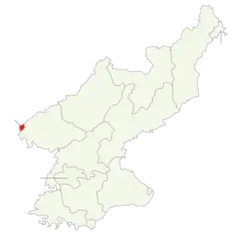 Sinuijus beliggenhed i Nordkorea
