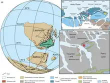 Kort over Siriuspassets placering i Grønland samt over Grønlands tidligere under kambrium.