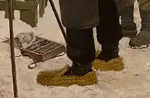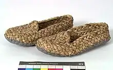 Inden sivene kan flettes, må de blødes op i vand, idet tørringen har gjort dem stive. Herefter flettes de til en stram fletning. Denne fletning rulles omkring en plade, der bestemmer størrelsen på skosålen[6]. Når sålen er lavet, sys skoens overdel på. Til sidst bankes skoen til, så den får en pæn form[6].