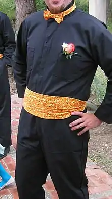 Det traditionelle materiale er sort silke eller satin, men efterhånden er det populært i brogede farver.