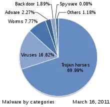 - En trojansk hest er malware forklædt som noget harmløst. Den har fået sit navn fra Homers skildring af Odysseus' krigslist mod byen Troja. I it-sammenhænge er den indsmuglede "trojaner" eller payload ofte et serverprogram, som gør det muligt for andre at fjernstyre offerets computer. Det kalder man også at installere en bagdør. Adgangen kan f.eks. misbruges til at foretage denial-of-service-angreb mod andre systemer på nettet. Fjernstyringsprogrammet Back Orifice er et af de mest kendte payload-programmer i trojanske heste, selv om programmet i sig selv er lavet til legale formål.