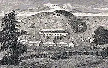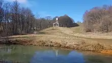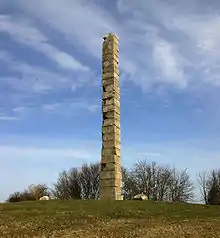 Skamlingsbankestøtten På Skamlingsbankens højeste punkt, Højskamling, er der rejst en 16 meter høj mindesøjle for 18 personer, der har gjort noget særligt for den danske sag i Slesvig. Mindesøjlen er lavet af 25 granitblokke og blev rejst i 1863,[4] men ideen opstod allerede i 1845, da møller Staal på en efterårsgeneralforsamling foreslog, at hver af selskabets medlemmer skulle skænke en sten og derved danne en stor granitsøjle. Det blev dog henlagt og først i 1850'erne, da der var blevet dannet en monumentkomité, der ville skaffe penge til et mindesmærke i Fredericia over general Frederik Rubeck Henrik von Bülow. Komitéen fik indsamlet 9.000 daler, og der blev mange penge i overskud, der blandt andet blev brugt til Istedløven, et monument ved Kolding kirke og forskellige gravsten. Efter en del snak frem og tilbage, blev de 18 navne valgt, og selve udformnigen blev lavet af arkitekten, professor Ferdinand Meldahl. Stenene ankom i sensommeren 1863 med skib fra Strømstad og leveret af stenbrugsejer Kullgrens enke i Uddevalla. Beboerne i Tyrstrup Herred leverede gratis 104 forspand heste til transporten og d. 10 oktober var den sidste sten bragt derop og stenhugger Hans Klewing begyndte straks arbejdet. Den fik dog kun lov til stå oprejst i 5 måneder, da preusserne under den tyske besættelse under 2. Slesvigske Krig, sprængte den i luften den 21. marts 1864.[4] Dette var dog ikke uden problemer. Efter flere forgæves forsøg, måtte man tilkalde en lokal stenhugger, og true ham på livet, til at bore huller i stenene, og endelig ved aftenstide affyrede tyskerne en kæmpemine, hvorpå søjlen løftede sig og faldt 43 skridt derfra i sydøstlig retning. Den 16. april blev stenene solgt på auktion, men gårdejer Raaben fik 2 af egnens folk til at købe stenene, uden at tyskerne anede uråd. De blev slæbt ind på nabomarken og gemt. Efter krigen kom de tilbage for at hente stenene og i maj 1864 genrejstes mindesøjlen.
