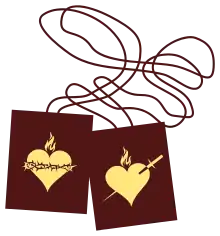 Den andægtige skapular består af to små billeder i stof, der sammenkobles af to snore, der derved bæres over skulderen, så det ene er foran, det andet bagved.