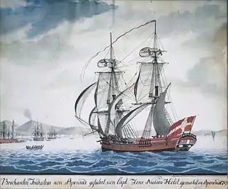 Fra 1790'erne findes skibsportrætter af danske skibe med Napoli og Vesuv som baggrund. De er malet i typisk italiensk stil, men den ukendte ophavsmand var fra Sønderjylland, måske Åbenrå. Fra Åbenrå kender man også Jes Jessen, der i 1792 og de følgende år malede skibe, der ofte havde Middelhavskyster som baggrund. I årene efter 1795 har man desuden portrætter udført af Jacob Petersen, der blev den mest produktive danske skibsportrætmaler.[5]