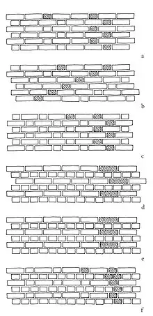 - At vekselskiftet introduceredes i Danmark i løbet af 1500-tallet fremgår eksempelvis af Mackeprang 1944 s. 38; Lorenzen 1921 s. 140. vekselskifte ses stedvist i romansk byggeri eksempelvis Sorø Cistercienserklosterkirke, men er her næppe et bevidst valg. Snarere er brugen her udtryk for den generelle ujævnhed der netop karakteriserer denne kirkes teglstensmure.