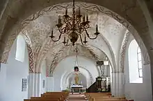Kirkens hvælvinger er dekoreret med velbevarede sengotiske kalkmalerier fra ca. 1500 til 1503, afdækket og restaureret 1896-99 af J. Magnus Petersen. Skibets østligste hvælvfag blev 1930 restaureret 1930 af Harald Borre, der samtidig fjernede overmalinger fra den første istandsættelse. Endelig foretog Olaf Heilvik 1977 en fuldstændig genrestaurering en afdækning og ny-restaurering, særligt i skibets vestligste fag.