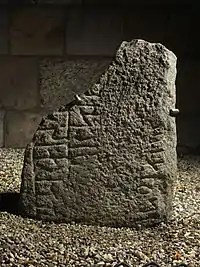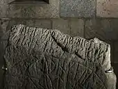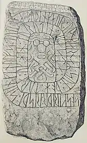 | Translitteration | Side A sąskiriþr : risþi : stin : finulfs : tutiR : at : uþinkaur : usbiarnaR : sun : þąh : tura : uk : hin : turutin : fasta : Side B siþi : sa : mąnr : is |