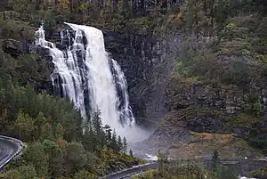 ![]() Skjervefossen Skjervefossens beliggenhed 60°34′55″N 6°41′10″Ø | |