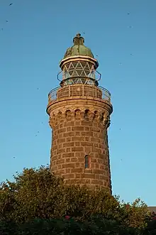 Det runde 22 meter høje tårn er bygget af fint tilhuggede bornholmsk granitsten og tegnet af ingeniøren Theodor Wedén. Inde i tårnet fører en trappe med 57 trin op til den øverste platform. Under omgangen er der rundbuede konsolbårne udkragninger og lanternen, som har trekantede glas hele vejen rundt, afsluttes af et klokkeformet kobbertag med en udluftningshætte.