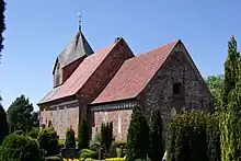 Skobøl Kirke blev første gang omtalt i 1240. Ifølge legenden blev kirken bygget af tre jomfruer. Kirken kaldes også for den lille kirke ved havet (på tysk Kirchlein am Meer eller på latinsk ecclesila sub mare). Den på det 31 meter høje Skobøl Bjerg beliggende kirke fungerede før som sømærke for sejlere på Husum Bugt. Kirken er opført dels i kvadersten og dels i mursten. Kirkens lille tårn er fra 1785. Det nuværende tårn afløste et ældre og højere udgave, som styrtede sammen i 1780. Af kirkens inventar kan nævnes et skrinalter fra 1300, en prædikestol af udskåret egetræ i barok stil fra 1735, en døbefont i sengotisk stil samt en fint udskåret dåbshimmel over døbefonten og en tørklædeholder ved siden af. Orglet er fra 2002.