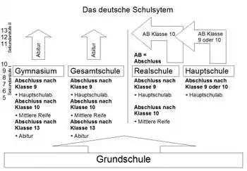 Efter grundskolen er det tre hovedløb eleven kan tage: Hauptschule, Realschule og Gymnasium. Alle disse går under betegnelsen Sekundarstufe I.