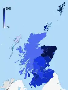 Andelen af skotsktalende i de skotske kommuner i 2011.