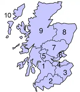Skotlands grevskaber blev i 1975 erstattet af 12 regioner med lokalt selvstyre. Disse blev med en reform 1. april 1996 erstattet af 32 kommuner , eller council areas .